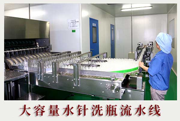 該車間小容量注射液生產線——安瓿洗烘灌封聯(lián)動線生產機組,為國內較為先進的水針聯(lián)動機組,可生產5毫升、10毫升兩種規(guī)格的產品,勞動效率高,每小時穩(wěn)定產量能達到20000支。